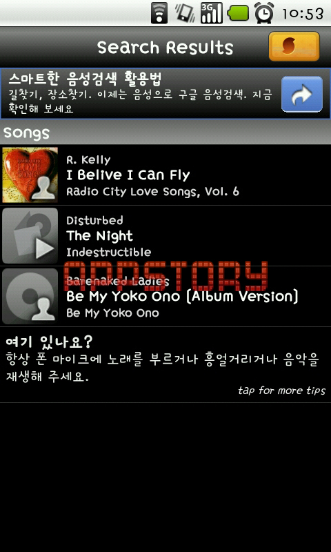 ¸ÞÀΠȸéÀÎ "Tap Here"¸¦ ´©¸£°í À½¾ÇÀ» µé·ÁÁÖ¸é (Çã¹Ö, À°¼º±îÁö Áö¿ø)