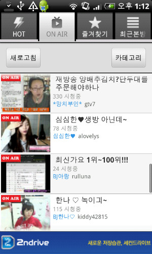 ON AIR ¸Þ´º¸¦ ¼±ÅÃÇÏ´Ï, ½Ç½Ã°£¹æ¼ÛÁßÀÎ BJµéÀÇ ¸ð½ÀÀÌ º¸À̳׿ä.¤»¤»