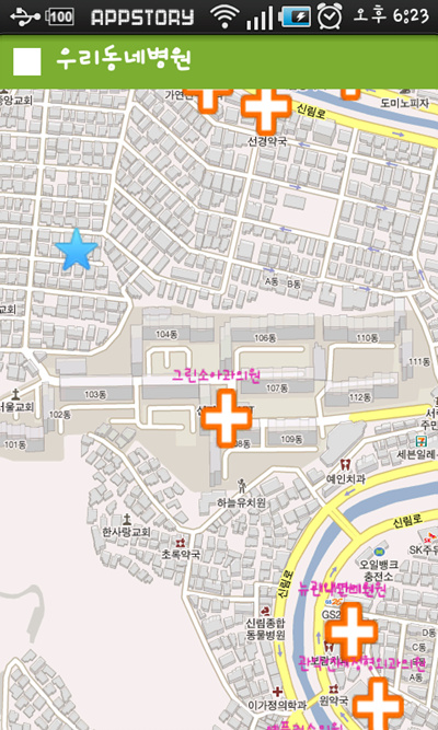 À§¿¡ ÀÖ´Â »ê ¸ð¾çÀÇ ¾ÆÀÌÄÜÀ» ´©¸£¸é Áöµµ»ó¿¡ º´¿ø À§Ä¡°¡ Ç¥½ÃµË´Ï´Ù.
