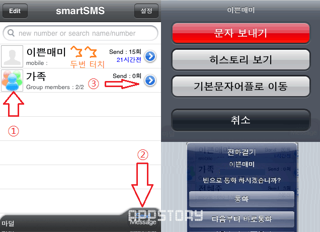 SmartSMSÀÇ ´ÜÁ¡Áß Çϳª´Â ¹®ÀÚ¸¦ º¸³×±â À§Çؼ´Â ÁÖ¼Ò·Ï¿¡¼ ¸®½ºÆ®¸¦ Ãß°¡ ÇØ¾ßÇÑ´Ù´Â Á¡ÀÌ´Ù. Edit > ¿øÇÏ´Â ÁÖ¼Ò·ÏÀÇ ¹øÈ£¸¦ Çϳª¾¿ ¼±ÅÃÇϸéµÈ´Ù. ´ÙÀ½ ¹öÀü¿¡¼´Â ´Ù¼öÀÇ ÁÖ¼Ò·ÏÀ» Ãß°¡Çϱ⠵îÀÇ ±â´ÉÀÌ »ý°åÀ¸¸é ÁÁ°Ú´Ù°í »ý°¢ÇÑ´Ù.