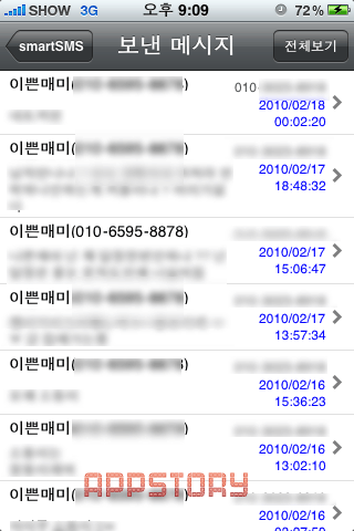 ÀÌ´Â º¸³½ ¹®ÀÚ ¸®½ºÆ®¸¦ º¸¿©ÁÖ´Â ±â´ÉÀ» À̾߱âÇϴµ¥, ÁÂÃø ĸÃÄµÈ È¸éó·³ ÁÖ¼Ò·ÏÀ̸§-ÀüȹøÈ£ ³»¿ëÀÌ ±âÀçµÇ¸ç º¸³½ ½Ã°£±îÁöµµ ¸í½Ã°¡ µÇ¾îÀÖ´Ù.