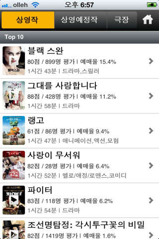 4. »ó¿µÀÛ ¸®½ºÆ®ÀÔ´Ï´Ù. ¾Æ·¡ »ó¿µÀÛ ¸®½ºÆ®´Â ÇöÀç »ó¿µÇϰí ÀÖ´Â ¿µÈ ¸®½ºÆ®ÀÔ´Ï´Ù. ±âº»Àº ¿¹¸Å¼øÀ¸·Î ³ª¿À°í ÀÖ½À´Ï´Ù.
