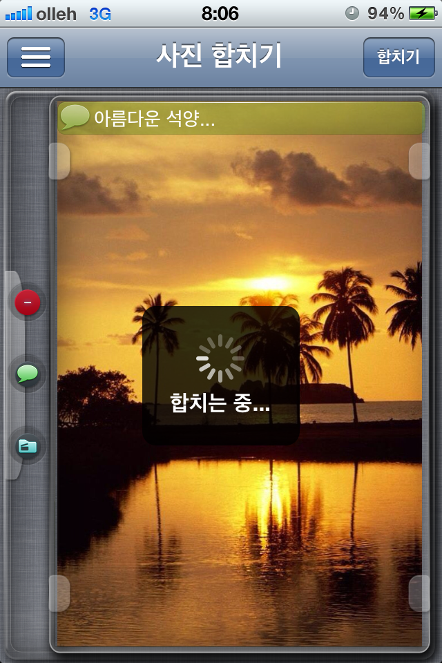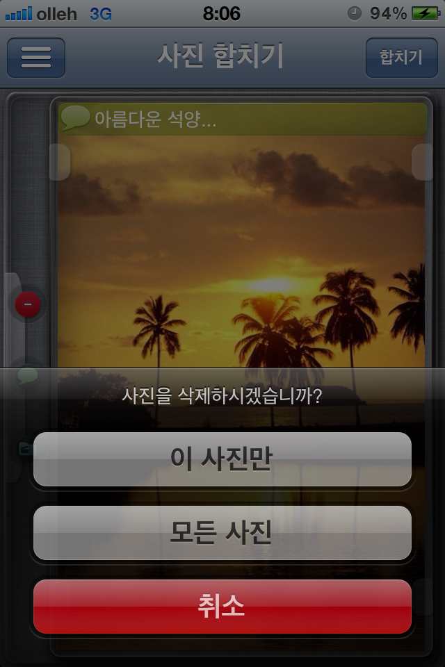 È¸é ¿À¸¥ÂÊ »ó´ÜÀÇ ÇÕÄ¡±â ¹öưÀ» Ŭ¸¯ÇÏ¸é ¼±ÅÃÇÑ »çÁøµéÀ» ÀÌ¿ëÇÏ¿© ÇÑ ÀåÀÇ »çÁøÀ¸·Î ¸¸µå´Â ȸéÀÔ´Ï´Ù.