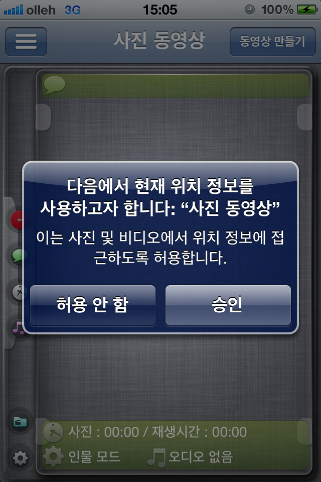 »çÁø µ¿¿µ»ó ¾ÛÀÌ ÃÖÃÊ·Î ½ÇÇàµÉ °æ¿ì¿¡ À§Ä¡ Á¤º¸ Á¢±Ù¿¡ ¹Ýµå½Ã ½ÂÀÎÀ» ÇØÁÖ¾î¾ß ÇÕ´Ï´Ù.