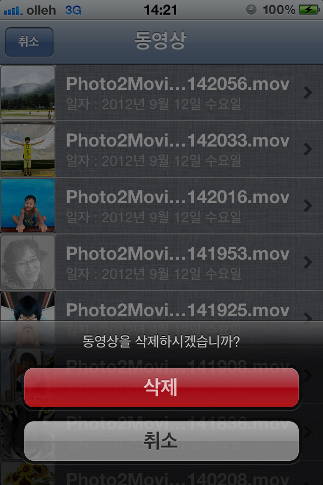»ý¼ºµÈ µ¿¿µ»óÀ» »èÁ¦Çϴ ȸé