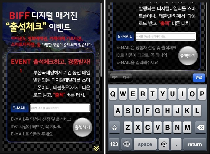 »óǰ ¹ÞÀ¸¼ËÀ¸¸é ÁÁ°Ú¾î¿ä. 1µî »óǰÀÌ ¾ÆÀÌÆù5 ¶ó°í Çϳ׿ä.^^ BIFF °ø½Ä Àϰ£Áö´Â ÀϺ°·Î Ãâ°£ÀÌ µÇ¾îÁö°í Àִ°Š°°½À´Ï´Ù.