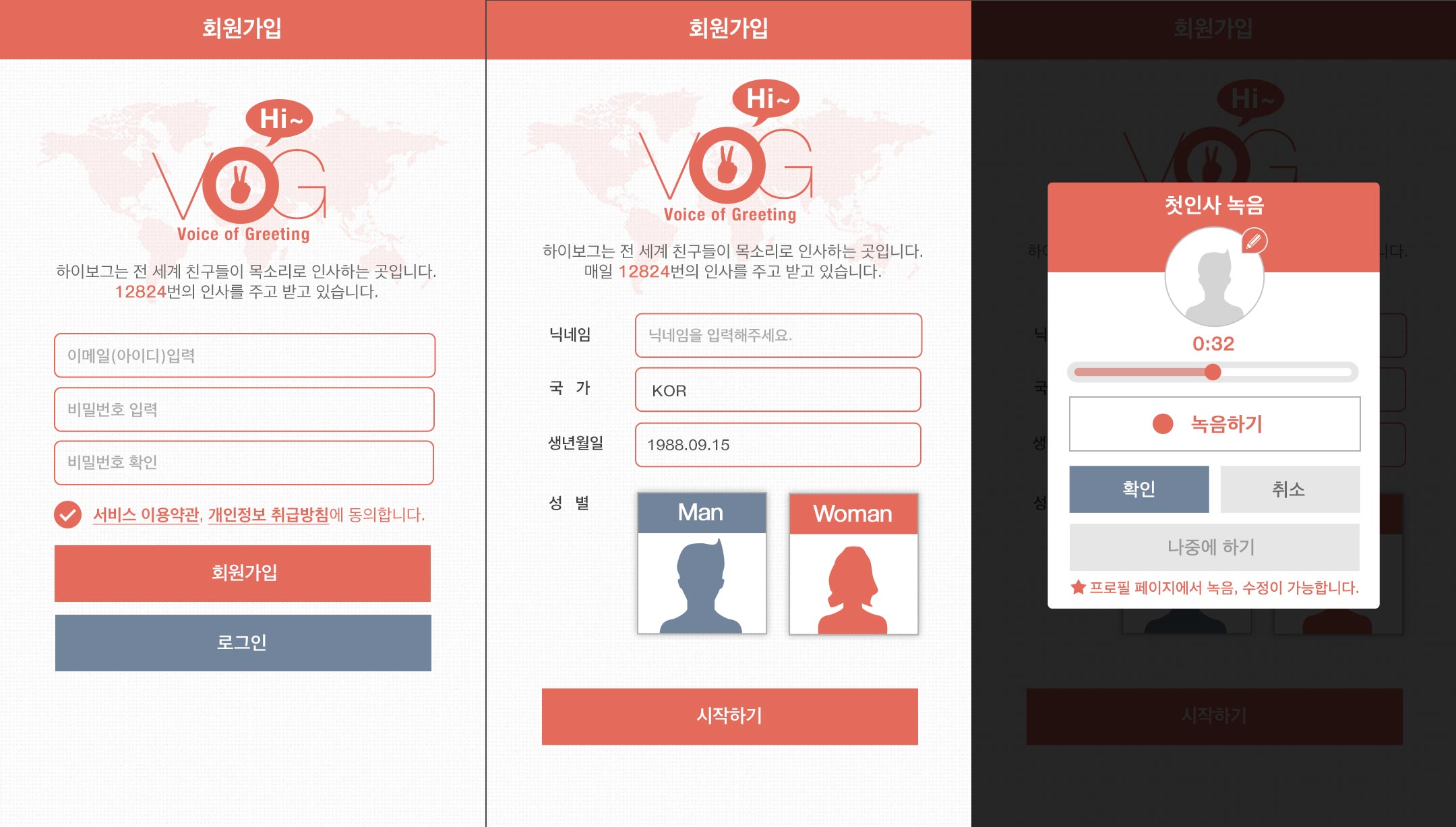 - 2. µÎ¹øÂ° ´Ü°è¿¡¼ ´Ð³×ÀÓ°ú ±¹°¡, »ý³â¿ùÀÏ, ¼ºº°À» ¼±ÅÃÇÏ°í ½ÃÀÛÇϱ⠹öư Ŭ¸¯!