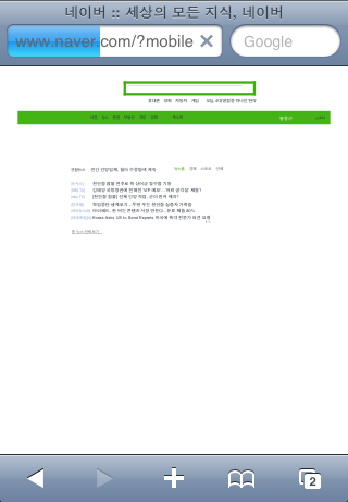 °Ô´Ù°¡ 800*480 ÀÇ °íÇØ»óµµ µð½ºÇ÷¹À̸¦ °¡Áö°í ÀÖ´Â ¿È´Ï¾Æ µî¿¡ ºñÇØ¼ ¾ÆÀÌÆùÀº 480+320 À̶ó´Â ÈξÀ ³·Àº ÇØ»óµµ¸¦ °¡Áö°í ÀÖ´Ù´Â Á¡¿¡¼ ÀÌ·¯ÇÑ ºÒÆíÇÔÀº ´õ¿í ±Ø´ëÈ µË´Ï´Ù. 800*480 ÇØ»óµµ¿¡¼´Â °¡·Î Àüȯ½Ã ´ëºÎºÐÀÇ À¥ÆäÀÌÁöÀÇ Á¿찡 °ÅÀÇ ´ëºÎºÐ ÇÑȸ鿡 Ç¥½ÃµÉ »Ó ¾Æ´Ï¶ó ±ÛÀÚ µîÀÌ ºñ·Ï ±ú¾Ë°°ÀÌ ÀÛÁö¸¸ ¶Ç·ÇÀÌ Ç¥½ÃµÇ±â ¶§¹®¿¡, ¼¹öÀÇ PC È¸é ¿ª½Ã 800*480 ÇØ»óµµ·Î ½º¸¶Æ®Æù°ú 1:1 ¸ÅĪÇÑ »óÅ·ΠÀÌ¿ëÀ» ÇÒ ¼ö ÀÖ½À´Ï´Ù. ±×·¯³ª ¾ÆÀÌÆù¿¡¼´Â 1:1 ¸ÅĪ »óÅ·δ ÆäÀÌÁöÀÇ ¹ÝÀýÁ¤µµ ¹Û¿¡ Ç¥½ÃµÇÁö ¾Ê°í ¹«¸®ÇÏ°Ô È®´ëÇÏ¸é µµÆ®ÇÇÄ¡ÀÇ ÇѰè·Î ±ÛÀÚ¸¦ ¾Ë¾Æº¼¼ö ¾ø°Ô µË´Ï´Ù. µû¶ó¼ Àüü È¸é »óÅ¿¡¼ ÆäÀÌÁöÀÇ ´ë·«À» ÆÄ¾ÇÇÑ ÈÄ¿¡ ȸéÀ» Ãà¼ÒÇÏ¿© PC ¸ð´ÏÅÍÀÇ È¸éÀ» ÀϺκÐÀ» À̵¿ÇÏ¸é¼ º¸´Â ºÒÆíÇÔÀ» °¨¼öÇØ¾ß ÇÕ´Ï´Ù.