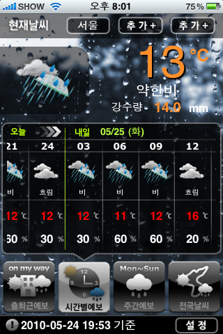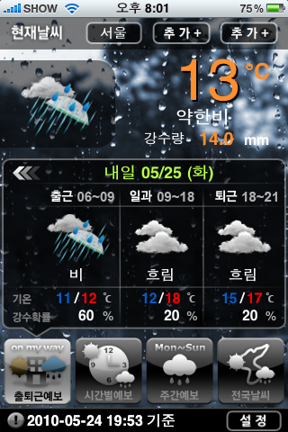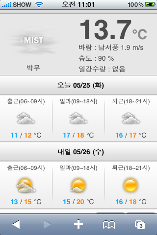 ÃâÅð±Ù¿¹º¸¶ó ÇÏ¿© Ãâ±Ù/Àϰú/Åð±Ù½Ã°£¿¡ ÃÖÀûÈ µÈ ³¯¾¾¸¦ º¸¿©ÁÝ´Ï´Ù.