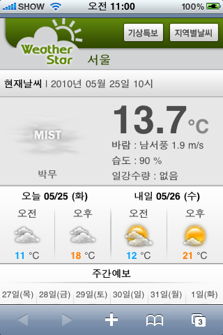 ½Ã°£º° ¿¹º¸¿Í Àü±¹ ³¯¾¾ ÀÔ´Ï´Ù. ƯÀÌÇÑ Á¡Àº ã¾Æ º¼¼ö ¾ø½À´Ï´Ù.