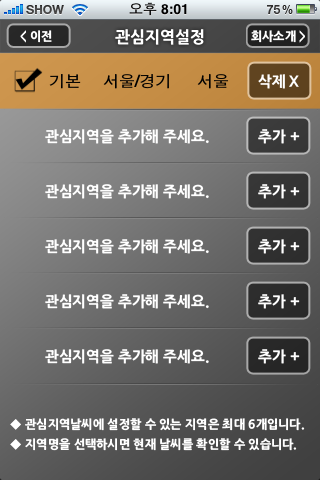 °ü½ÉÁö¿ªÀº ÃÖ´ë 6°³ Áö¿ª±îÁö ¼³Á¤ÇÒ ¼ö ÀÖÀ¸¸ç ½Ã/±º ´ÜÀ§·Î ÁöÁ¤ °¡´ÉÇÕ´Ï´Ù.