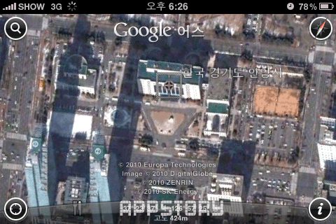 Google Earth´Â.. ±¸±ÛÀÇ ´ëÇ¥ÀûÀÎ ¼ºñ½º¸¦ ¾ÆÀÌÆùÀ¸·Î ¿Å°Ü¿Â ¾îÇø®ÄÉÀ̼ÇÀÌ´Ù. ±¹³» ´ÙÀ½Áöµµµµ ±¹³» »çÁø¿¡ À־ ºñ½ÁÇÑ ±â´ÉÀ» °®°í ÀÖÁö¸¸ Áö±¸ °÷°÷À» µÑ·¯º¼ ¼ö ÀÖ´Â ¹æ´ëÇÔ°ú ¿¬°è ¼ºñ½º¿¡ À־ µ¶º¸ÀûÀÌ´Ù.