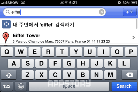 ¸¸¾à ±¹³»¿¡ ¿¡ÆçÀ̶ó´Â Àå¼Ò°¡ ÀÖ´Ù¸é Çö À§Ä¡ ±âÁØÀ¸·Î °¡Àå °¡±î¿î ¿¡ÆçÀ» ã¾ÆÁØ´Ù. ÇÊÀÚ´Â ÆÄ¸®¿¡ ÀÖ´Â ¿¡ÆçžÀ» ¿øÇÏ´Â °ÍÀ̹ǷΠEiffel paris¶ó°í ÀÔ·ÂÇϰųª, EiffelÀ̶ó°í ÀÔ·Â ÈÄ Á¤È®ÇÑ ÁÖ¼ÒÁö¸¦ ã¾ÆÁ־ µÈ´Ù. ^^ ºñ·Ï À¸ð½ÀÀÌÁö¸¸ ÆÄ¸® ¿¡ÆçžÀÇ ¸ð½ÀÀ» º¼ ¼ö ÀÖ´Ù. ¿ØÁö ¿¡ÆçžÀÇ À§¼º»çÁø¸¸ º¼ ¼ö ÀÖ´Ù´Â °ÍÀÌ ¾Æ½¬¿î »ç¿ëÀÚ´Â ¿ìÃø ÇÏ´ÜÀÇ ¼³Á¤¿¡ µé¾î°¡ Panoramio ¼ºñ½º¸¦ »ç¿ëÇØº¸ÀÚ.