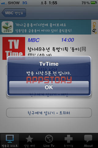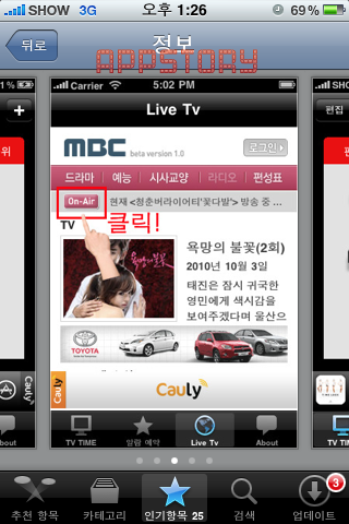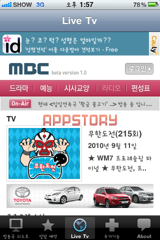 Áï MBCÀÇ ½Ç½Ã°£ ¹æ¼Û(DMB)¸¦ ¾îÇÃÀ» ÅëÇØ ½ÃûÇÒ ¼ö°¡ ÀÖ´Ù´Â °ÍÀÌ´Ù.