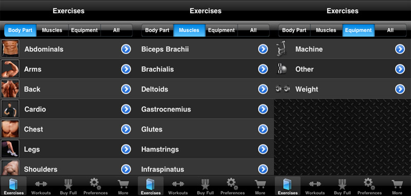 ¢º¾ÛÀ» ½ÇÇàÇÏ¸é ½ÅüºÎÀ§(Body Part), °³º°±ÙÀ°(Muscles), ¿îµ¿±â±¸(Equipment)ÀÇ 3°¡Áö ¿îµ¿¹ýÀ» Á¦½ÃÇÕ´Ï´Ù. ±×¸²´ë·Î ¼±ÅÃÇÏ¸é ¿îµ¿¹æ¹ýÀ» º¸¿©ÁÝ´Ï´Ù.