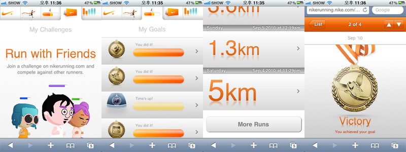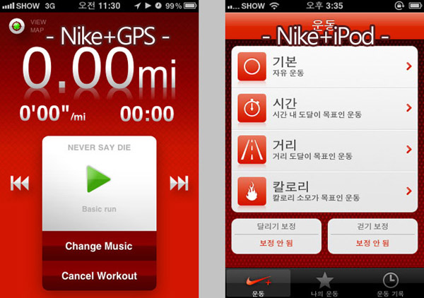 iTunes µ¿±âÈ ¾øÀ̵µ, Nike ·¯´×»çÀÌÆ® Á¢¼Ó ¹× ±â·Ï°ü¸®°¡ °¡´É (3G,WiFiÁ¢¼Ó) |