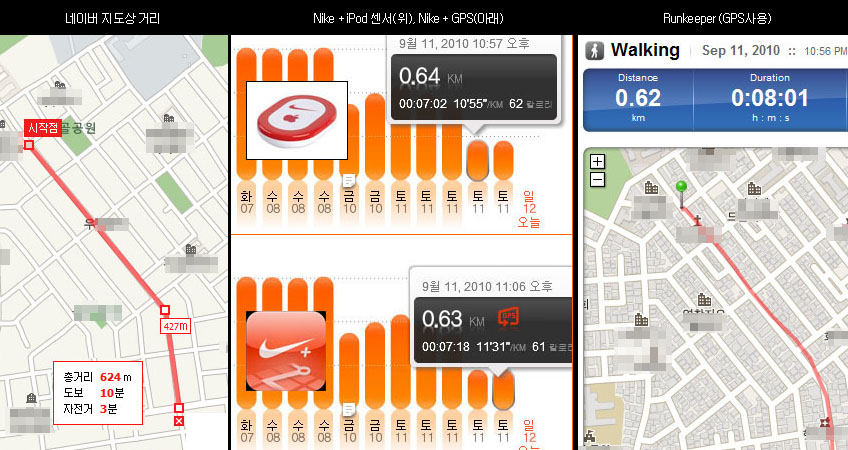 ³×À̹ö Áöµµ·Î 624m°Å¸®ÀÎ °÷À» Nike +iPod, Nike +GPS, Runkeeper ÀÇ 3°¡Áö ¾ÛÀ¸·Î °É¾î º» °á°ú, ³³µæÇÒ ¸¸ÇÑ ¿ÀÂ÷¸¦ º¸¿´À¸³ª, ºñ±³Àû GPS¸¦ »ç¿ëÇÏ´Â ÆíÀÌ ´õ Á¤È®ÇØ º¸¿´½À´Ï´Ù.